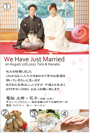 写真を組み合わせたシンプルなデザインです。4枚入り ますので、アップや全身写真などふんだんに使えます。